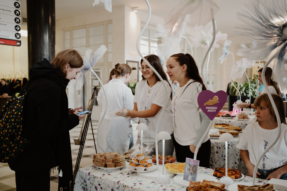 Ketvirtadienį Lietuvos sveikatos mokslų universiteto (LSMU) centriniuose rūmuose, LSMU Slaugos fakultete, LSMU Farmacijos fakultete taip pat vyko Pyragų diena, skirta dalytis gerumu ir padėti neišnešiotus mažylius slaugantiems tėvams.
